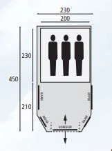La Bardani Airwave 230 est une tente gonflable de 2 à 3 personnes en polyester ( Polyester Protec UV50, 4000 mm). Le tissu extérieur a un revêtement argenté pour garder la chaleur à l’extérieur. La feuille de base est en PE. Panneaux en filet dans les parois latérales, et une porte en filet plein écran à l’avant. Fermetures à glissière de porte de 8 mm. Système de ventilation à ventilation à l’arrière. Compartiments de rangement pratiques dans la tente intérieure. La tente intérieure est occultée pour plus de confort.