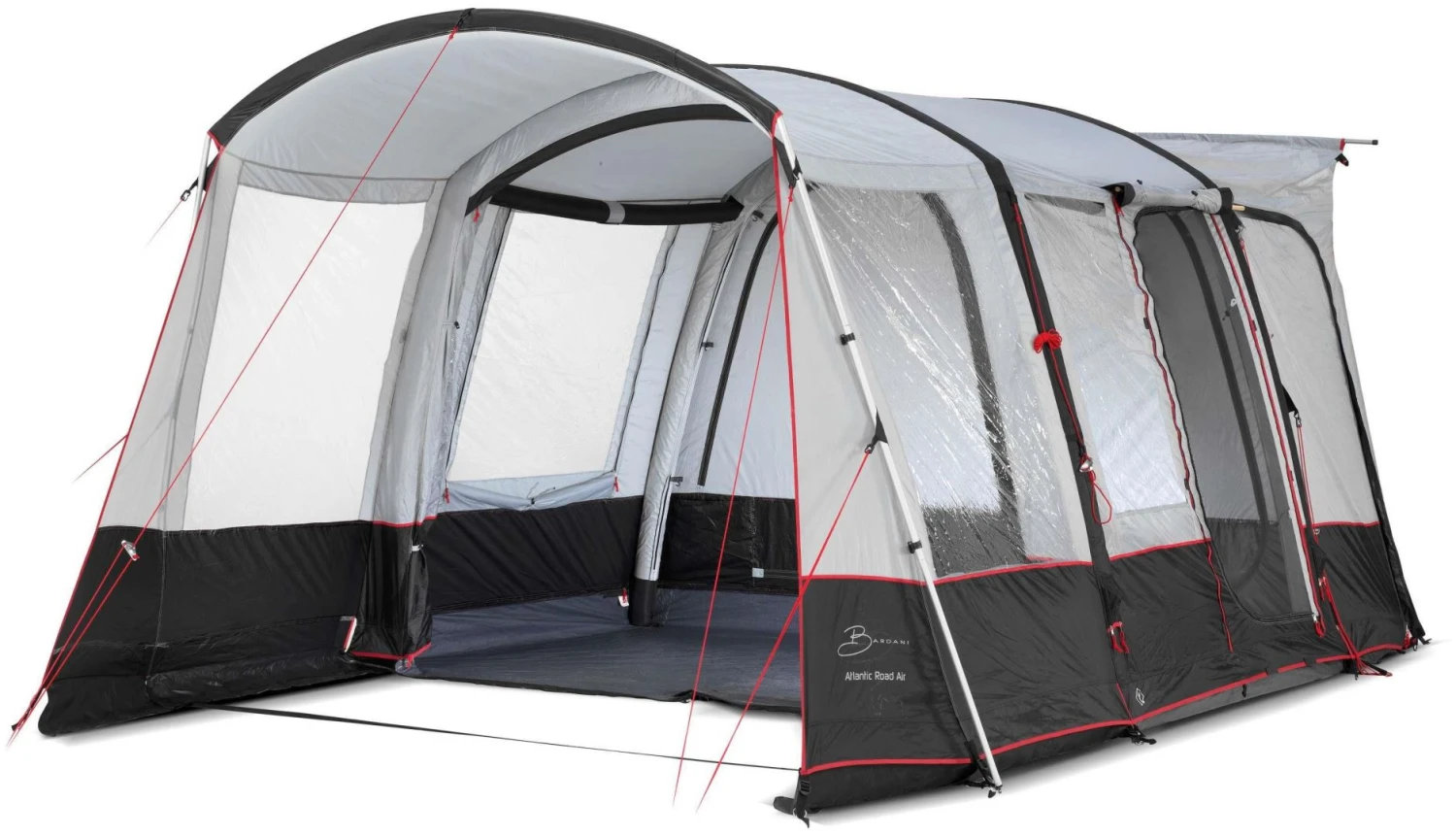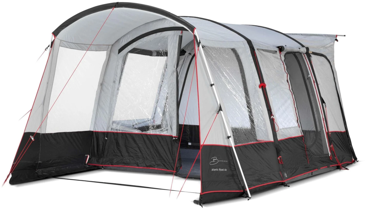 De Bardani Atlantic Road Air is een snel opzetbare vrijstaande bus/ campertent. De buitentent is van polyester ( Polyester Honeycomb 150D PU gecoat, 5000 mm). Het frame bestaat uit luchtslangen ( 10 cm dik). Aansluithoogte is 180-240 cm. Vast PE kuipgrondzeil. Getapete naden.Panorama-ramen. De aansluitlus is voorzien van een caravan-koord. Oprolbare voor- en zijdeur.