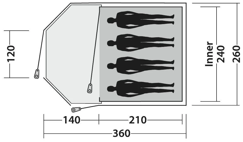 Avec un espace pour quatre personnes dans une tente dôme avec une grande zone avant, le Blazar 400 a un design polyvalent, avec des poteaux en fibre de verre, idéal pour les couples et les jeunes familles et amis. La zone avant avec un tapis de sol amovible a une grande porte d’entrée plus une porte latérale avec des fenêtres et des évents imperméables, ainsi qu’une grande ouverture de ventilation à l’arrière de la tente. La tente intérieure a une porte en forme de D et un point d’accrochage pratique pour les lanternes.