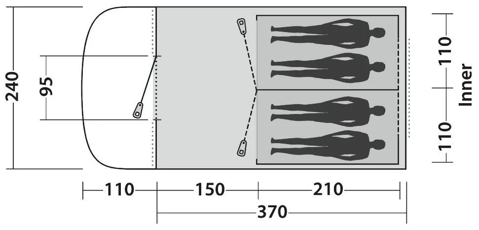 Sleeping four in two bedrooms, the Palmdale 400 is a great choice for growing families and sharing with friends. With colour-coded fibreglass poles and pole sleeves, youll find it fast and easy to pitch. A sewn-in groundsheet cuts out draughts whilst generously-sized, curtained windows in the living area let light flood in.