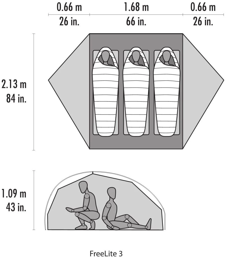 The Inside: Even with a generous 1.09 metres (43 in.) of headroom, 10.2 cm more than the previous version, and the true rectangular floor (no foot taper like most other tents), the FreeLite is now 255 grams (9 oz.) lighter.