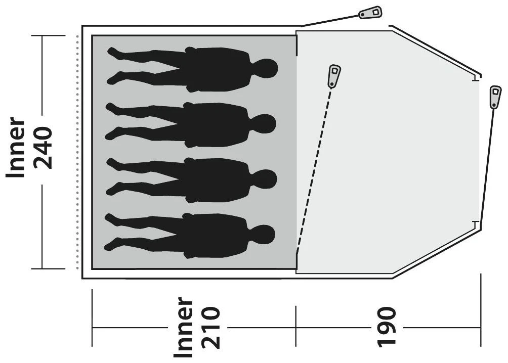 Ideal for active family campers, the Outwell Earth 4 tunnel-style poled tent is quick and easy to pitch, offering generous, airy living space and one large bedroom to sleep four. Its a good choice for enjoying family time together, sharing stories as night falls. The detachable bathtub groundsheet can lie flat at the main and side doors to avoid tripping.