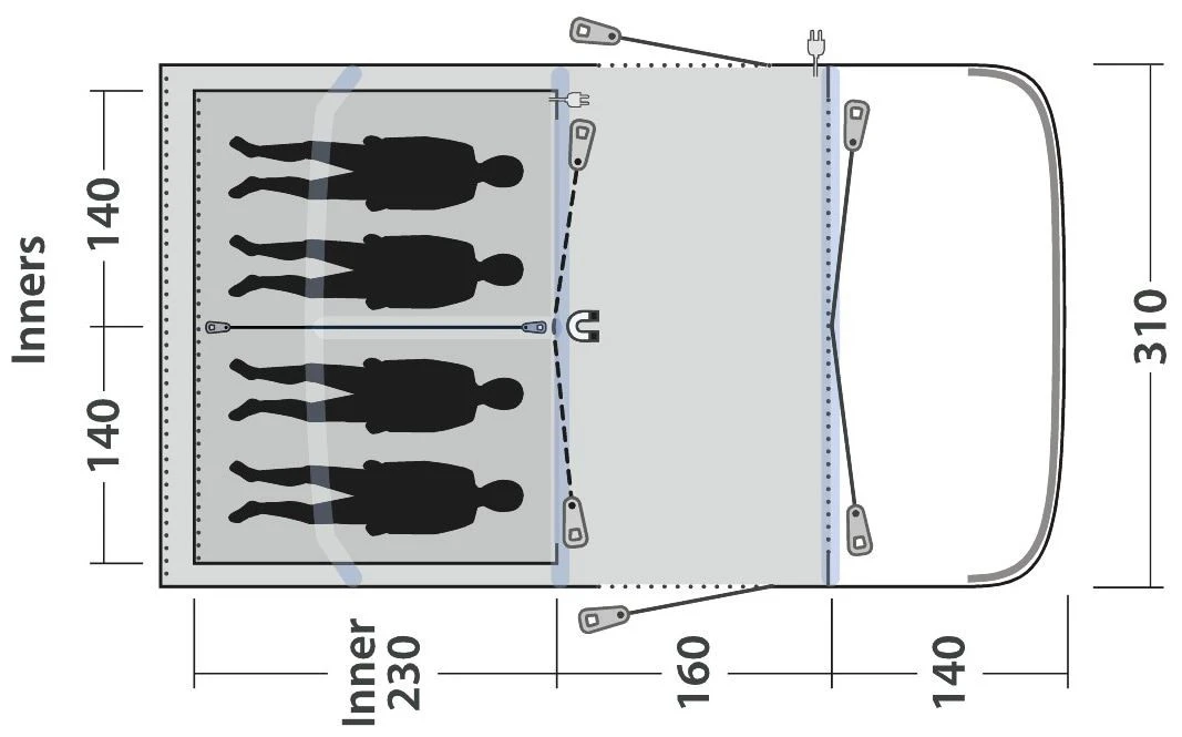 De tent heeft vier slaapplaatsen, voldoende vloeroppervlak, stahoogte en ventilatie om volop van het campingleven te genieten, en is gemakkelijk op te zetten en in te pakken. Een diepe luifel aan de voorkant zorgt voor schaduw en beschutting, en verlengt de leefruimte wanneer u de tentdeur wegrolt om te genieten van de verbinding met de natuur. Ontworpen voor vele jaren van familieavonturen in de buitenlucht; een tent die u een leven vol gekoesterde herinneringen bezorgt.