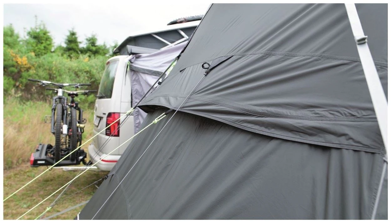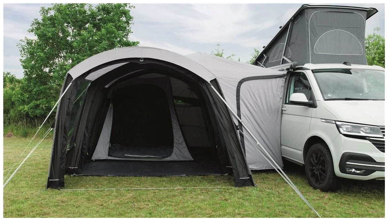 The versatile Outwell Jonesville 290SA Flex inflatable drive-away awning is attached in parallel to either side of most campervans via its removeable access zone. Its tunnel tent style is a great choice for both families and couples who enjoy the freedom and variety of touring life. Made with outstanding durable, fully waterproof, ripstop fabric, it adds the flexibility of a large living area with ample headroom and can sleep two in the optional inner ideal for teens or friends.
