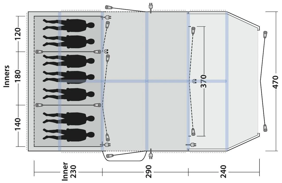 Sleeping seven in three superbly ventilated bedroom inners, its ideal for large families or camping with friends whilst the spacious, light-filled living area offers ample room for tent life, board games and dining. The large Panorama front ensures you stay connected with nature and the great outdoors.