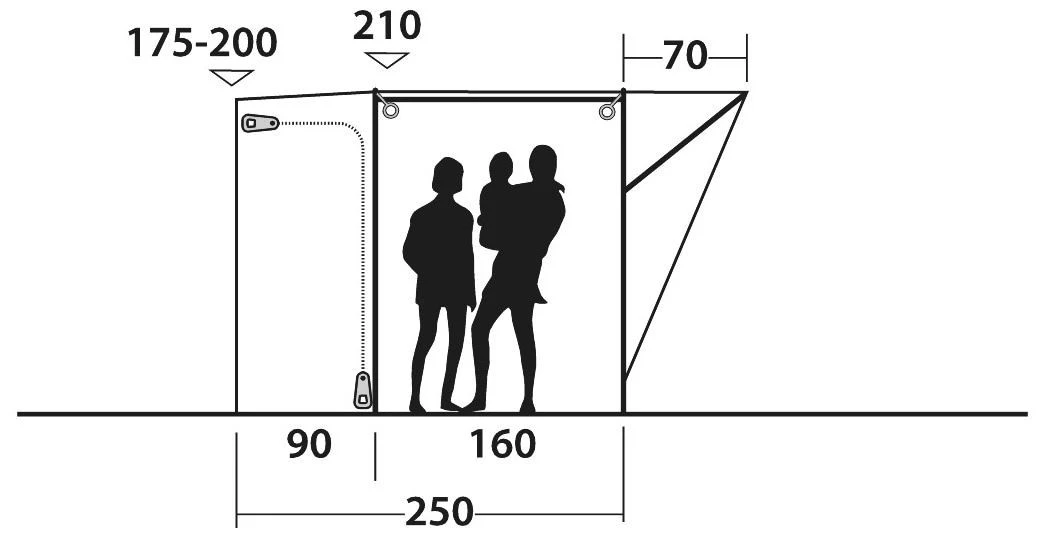 La conception de la tente tunnel de l’extension avant Newburg 160 Drive Away a un poteau intérieur central le long de la ligne de toit, une entrée d’un côté de la zone d’accès, avec de la gaze et des boucles pour le réglage en hauteur. L’auvent est facilement et rapidement fixé aux rails du camping-car dans une gamme de hauteur de 175 cm – 200 cm au moyen de cordes (5 mm et 7 mm). Une entrée avant pliante est équipée d’un filet insectifuge sous un auvent rond.