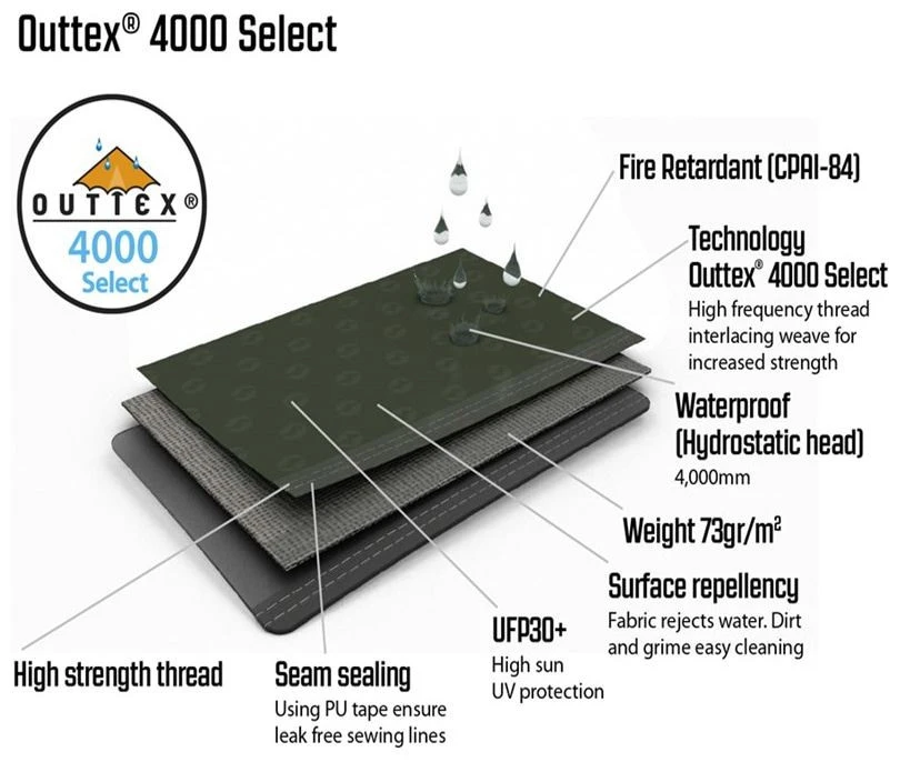 | Tente extérieure | Outtex® 4000 choisir, 100% polyester; 4000 mm |