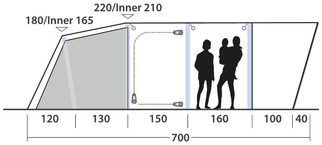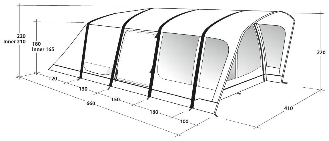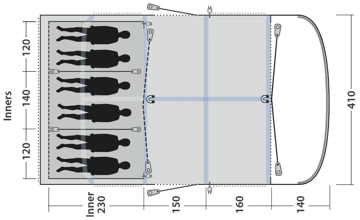 Met voldoende stahoogte geniet u van het ruime gevoel van een volledig uitgeruste tent die u het comfort van thuis biedt. Er is ruimte voor zes personen, ideaal voor gezinnen of vrienden die een tent delen, en door het uitstekende ontwerp maakt u contact met de natuur en kunt u samen ontspannen in stijl. Door de voordeur weg te rollen creëert u een panorama-ervaring waarmee u buiten naar binnen brengt.