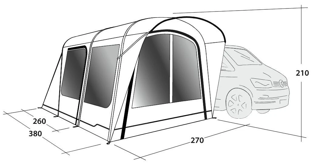 A great choice for friends, couples seeking extra space and families with growing children wanting privacy, the inflatable Outwell Wolfburg 380 Air drive-away awning offers generously-sized, extremely well-ventilated space. Its easily and quickly attached in parallel with your campervan to reduce the overall width on small pitches.