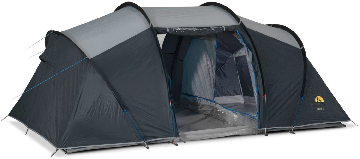 La Safarica Chicco 2 est une tente double face en polyester, avec deux cabines de couchage séparées (poisson par poisson). La tente extérieure est en polyester, avec des coutures collées et une colonne d’eau de 4000 mm. La tente dispose d’une feuille de sol de cockpit en PE dans le salon. La tente dispose d’un système de ventilation permanent. Les fenêtres sont verrouillables au moyen d’un rideau. Le Chicco a des bâtonnets de fibre de verre.