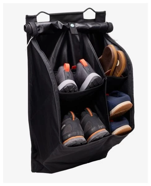 Organisateur avec quatre compartiments pour ranger les chaussures et le matériel de camping.