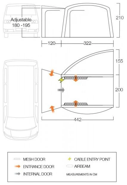 - De Vango Magra Air VW is een SUV kampeerbus (180max-210max).