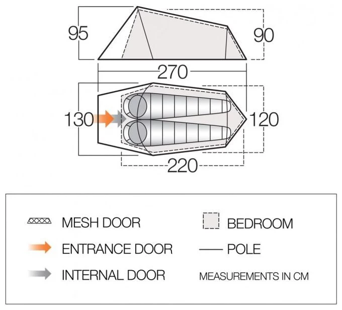 - Vango Protex® 70 denier polyester buitentent, waterkolom 3000 mm – zeer waterdicht, duurzaam en betrouwbaar materiaal. Exclusief bij Vango.